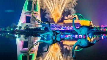 侏罗纪水世界带来整个夏日清凉的劲爽体验,经典的水上项目让你忘却整个夏日的炎热,酷爽的玩水体验让你尽情释放所有激情,热辣的演出点燃你身体的每一个细胞。让孩子们享受一个难忘的暑期。届时在晚上也可照样玩大部分的项目,更可体验水世界的巨型水滑道大喇叭、30米冲击大滑板的刺激,还可以在巨型水寨中展开戏水大战(水世界需另购门票)。