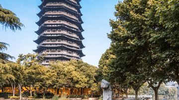 红梅公园里能看到天宁寺的天宁宝塔,沿着公园的水域边走走,一定能找到令人满意的拍摄天宁宝塔倒影的地方。