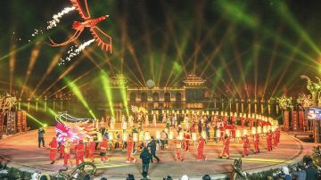 游四时山镇,皆有不同美景,四大山镇演绎精彩呈现:晨钟暮鼓气势恢宏、嘻哈道欢乐逗趣、吉盐圣地如梦似幻、逍遥幻境仙韵开启。另外,还有民间杂耍、评弹戏曲、快闪精彩不停上演。