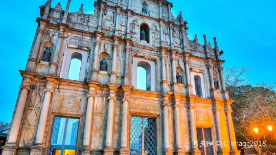 大三巴牌坊为巴洛克风格,以花岗岩建成,上下共分五层,其雕刻和镶嵌较为精细,融合了中外建筑艺术的精华,是一个中西文化交融的艺术品。如今人们常常在此打卡拍照。