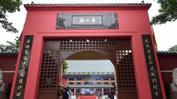 这是一座纪念车公的庙宇,因其地理环境奇特,吸引着众多游客前来参观。入口两旁的石柱上,挂有一副对联:“车转普天下般般丑心变好,公扶九约内事事改祸为祥”。