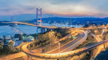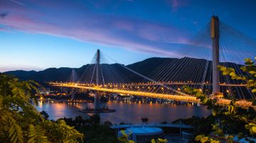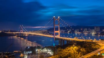 青马大桥跨越马湾海峡,连接着青衣和马湾,是香港的大桥。大桥全长2160米,是行车铁路双用悬索式吊桥。如今青马大桥是一条连接香港国际机场、大屿山及市区的干线公路,也是香港的标志建筑之一。
