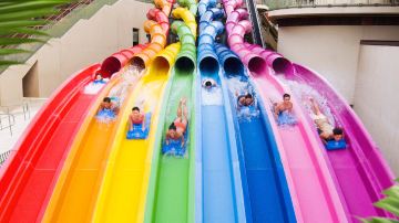 △ 座落于翠绿环山与南中国海的交汇,香港海洋公园水上乐园带你进入这个全年、全天候开放的乐园。挑战每一个激浪、畅游各大小河流并征服每一条水上滑道。重新认识和欣赏大自然的奇妙。重整你的思绪,让每一个击浪为你打气,为亲友间建立更深厚的联系。