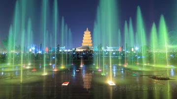 大雁塔北广场音乐喷泉又叫西安音乐喷泉,位于大雁塔北广场中轴线上。音乐喷泉广场由水景喷泉、文化广场、园林景观、文化长廊和旅游商贸设施组成,是全国较重要的唐文化广场。广场上有数量庞大的雕塑、雕像,在欣赏音乐喷泉之余,细细的品味一下这些雕塑也是不错的选择。