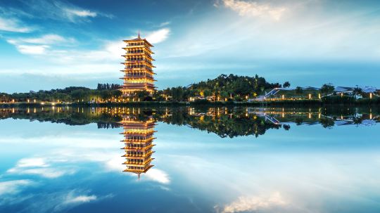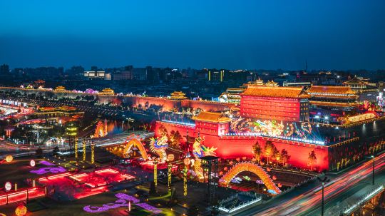国家5A景区大唐芙蓉园,坐落于西安城南的曲江新区,与大雁塔遥遥相望,占地面积为998亩,其中水域面积300亩,绿地面积440亩,建筑面积近 10万平方米。园区建筑由中国工程院院士张锦秋先生担纲总体规划与建筑设计,日本园林大师秋山宽先生承担园林景观设计,是一个全 方位展示盛唐风貌的大型文化主题遗址公园。自2005年4月11日(农历三月初三)正式对外开放以来,一直致力于打造高品质、高标准的品牌旅游景区。