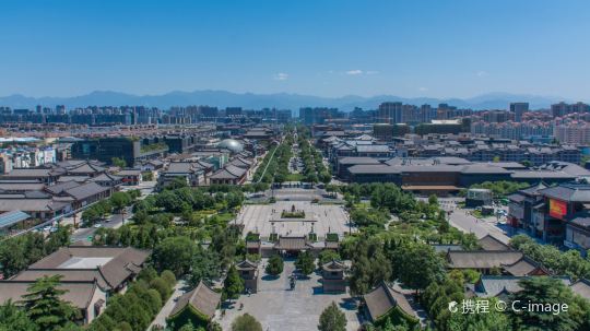 站在钟楼上,能够看到从钟楼延伸出来的东、南、西、北四条大街,钟楼周边有西安繁华的商区、及不远处的鼓楼。