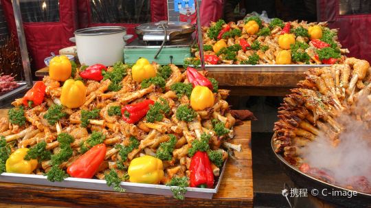 这里也称为“回坊”、“坊上”,在这里你能够吃到几乎所有的西安小吃,包括各种烤肉串、羊肉泡馍、灌汤包子、麻辣羊蹄、水盆羊肉、酸菜炒米、腊牛羊肉、凉皮、羊肉饼等。在这里吃饱喝足后,还可以买一些具有当地风味的糕饼、干果、蜜饯等小吃,作为伴手礼带回家赠送亲朋好友。