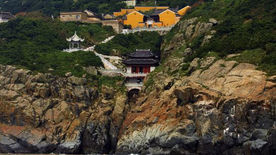 洛迦山位于普陀山本岛东南,是普陀山的“小行星”。从本岛东面的海岸望去,洛迦山好似一尊大佛卧在海面上,有“海上卧佛”的美誉。去洛迦山要从普陀山本岛乘船前往,岛上游人不算多,禅院和灯塔是不可错过的景观。