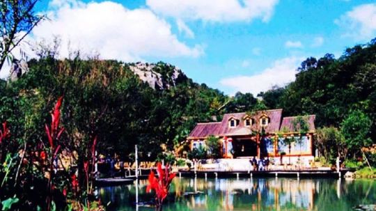 《射雕英雄传》旅游城坐落在金庸笔下桃花岛风光迷人的散花峰下,占地2.5平方公里。由宁波华东物资城市场建设开发有限公司投资兴建。整体建筑具宋代风格且艺术精湛,巧妙结合了山、岩、洞、水、林自然景观,让你自然地融入武侠意境,追寻神奇多彩的武侠生活。 旅游城主要包括黄药师山庄、牛家村、东邪船埠、归云庄、八卦书屋、、黄蓉房、冯氏墓、临安街、京城广场、南帝庙、清音洞、大佛岩、听雨居等景点。