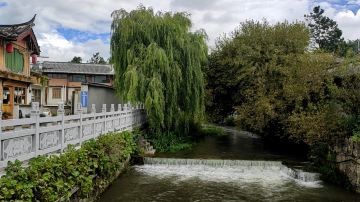 古桥横跨于古镇内温婉的青龙河上,桥长约25米,高4米,宽4.5米。桥周围的景色也很温婉,束河八景之中的“烟柳平桥”指的就是这里,每年初春时节,桥两侧的杨柳萌发新绿,柳枝如烟似纱摇曳在桥边,仿佛绿色的波浪要涌到桥面上来,此时也是在这里拍摄美景的好时机。