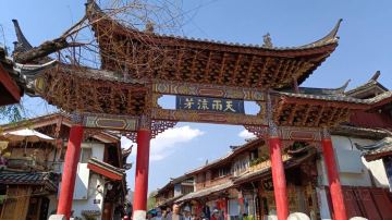 天雨流芳牌坊位于通向木府的路上,牌坊上大书“天雨流芳”四字,乃纳西语"读书去"的谐音,体现了纳西人推崇知识,重视教育的灵心慧性;石牌坊"栋梁斗拱,通体皆石,坚致精工,无与敌者",是国内石建筑的精品。牌坊附近可玩的地方挺多,夜晚牌坊配上专属的灯光真的有“天雨流芳”的感觉,实在是摄影的一个好的取景地。