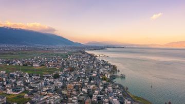 洱海有名的景色是东岸的双廊,这里可以欣赏到优美的湖景,阳光透过云层,折射在湖水上,形成了“洱海神光”,以连绵的青山为背景,是摄影爱好者捕抓的风景大片。