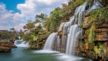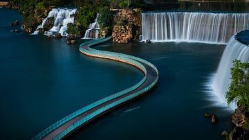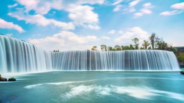 昆明瀑布公园位于牛栏江—滇池补水盘龙江入口段。公园的瀑布景观区充分利用牛栏江引水入滇工程而形成的人工瀑布及湖泊,其利用约12.5米的地势高差,建设成宽幅约400米的人工瀑布。该人工瀑布属国内幅宽较大、流量较大、规模较大的人工瀑布。