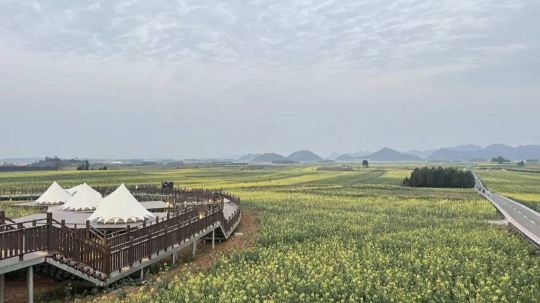 游客可以漫步在油菜花海中,感受这金黄的世界,若是专业的摄影爱好者,则可以登上花海观景台,那里可以拍摄到整片的油菜花海,非常壮观。