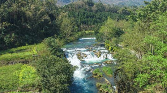 多依河位于罗平县城东南处,河水清澈碧绿,时有竹筏出没其中。景区可以欣赏到河道上分布着的罕见的大小钙化瀑布浅滩,还有布依族的甘蔗地、香蕉园、休闲坝子、自用竹排码头,也可以去布依族寨子做客。