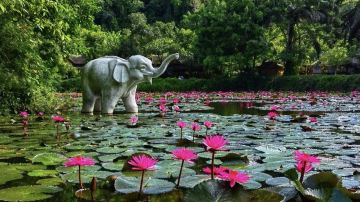 曼听公园位于云南省景洪市东南,是个天然的村寨式公园,也是西双版纳历史悠久的城市公园。