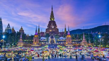 云南西双版纳景洪市告庄夜市是西双版纳具有魅力风情的夜市。星光夜市大片的彩色伞很有特点,这有泰国原装进口的大金塔,是很精致的佛塔,也是一大亮点。另外在告庄西双景有东南亚各国手工艺品、傣族陶艺、特色小吃等,可购买手信。西双版纳由于独特的气候,一年四季都可以摆摊,西双版纳告庄夜市不仅仅是文艺青年的聚集地,更是游客购买伴手礼的好去处。