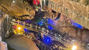 地下倒石林所在的溶洞空气清新流畅,气温凉爽宜人,仿佛设有天然空调一般。