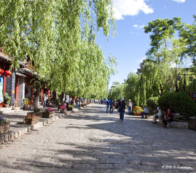 丽江古城又名大研镇,是茶马古道上有名的城镇之一,影视剧《一米阳光》、《木府风云》等都在此取过景。古城内木楼青瓦,古街石巷,小桥流水,站在古城东大街上,举头即可遥望玉龙雪山,景色十分秀丽。