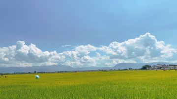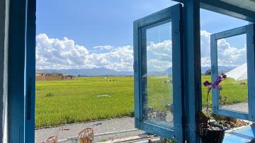 喜洲彩色稻田以绿色、白色、黑色、紫色叶水稻种植于水,会呈现出非常漂亮的稻田画。稻田里的抽水站,就像一个文艺的观景台,有白色的围墙,稻田里还有扎染手工艺人,人们在此可以体会手作的乐趣。