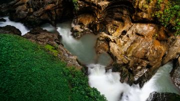 九乡风景区位于宜良县九乡彝族回族自治乡境内,景区内森林茂密,动植物资源丰富,既有壮丽的山川峡谷,也有瑰丽的地下溶洞,属于典型的喀斯特地貌景观。主要景点包括:荫翠峡、惊魂峡、雄狮厅、雌雄飞瀑、神田等。