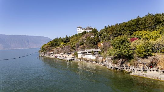 岛上可参观的地方较少,更多游客还是选择在岸边给小普陀拍照。晴天时,苍山洱海都在背后,一座小岛和楼阁独立湖中,画面奇幻而又美丽。每当成群的海鸥飞过时,画面更加动人。花几块钱买一包饲料喂海鸥,会是十分有趣的体验。