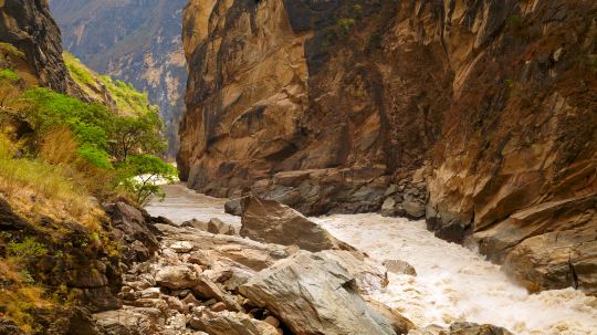 虎跳峡是世界上落差较大的峡谷,位于香格里拉县虎跳峡镇东部,分为上、中、下虎跳三段,全长约20公里。金沙江奔流至此,被玉龙、哈巴两大雪山所挟峙,江面窄处仅二三十米,加上巨大的落差,江水奔腾汹涌。除了雄奇的自然风光,虎跳峡更是世界知名的徒步胜地,每年慕名而来的户外爱好者络绎不绝。走过中虎跳,下到江边,你才能真正领略到虎跳峡恢宏磅礴的气势。