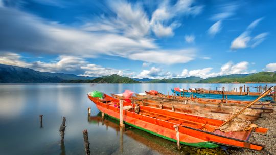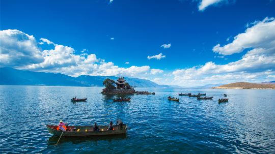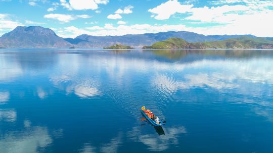 泸沽湖位于云南与四川边界,海拔约2685米,风光旖旎,民风质朴,有“高原明珠”之称。云南一侧湖畔居住的摩梭人奉行“男不娶女不嫁”的走婚制度,所以泸沽湖又被称为“东方女儿国”。