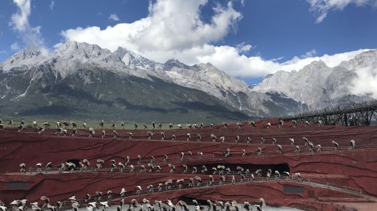 《印象丽江》是张艺谋导演的“印象系列”之一。演出以雪山为背景、以民俗文化为主题、以当地原住民为演员,在海拔3100米的玉龙雪山甘海子蓝月谷剧场露天舞台,真实的展示出原住民对天、地、人、山的感情。