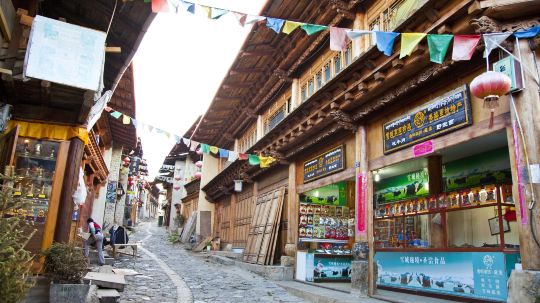 独克宗古城位于迪庆藏族自治州香格里拉县东南隅,为唐代吐蕃王朝所建。“独克宗”是藏语发音,意为“月光城”和“建在石头上的城堡”。古城依山而建,路面就地势铺筑石板,自然起伏。至今,在石板路上甚至还能看出马蹄的印迹,这是岁月久远的马帮留下的信物。