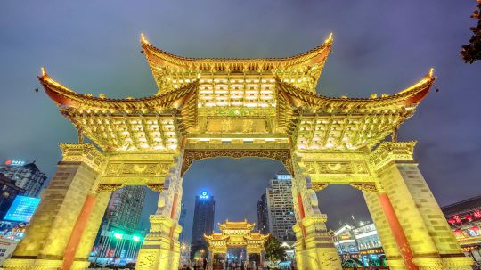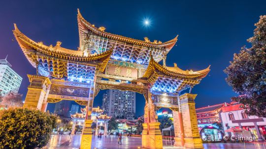 金马碧鸡坊位于昆明市三市街与金碧路交叉口,始建于明朝宣德年间,如今是昆明的地标和市中心,也是昆明的象征之一。绝大多数到昆明的游客都会造访这里,和牌坊合影,也逛逛周围的市中心和夜市。