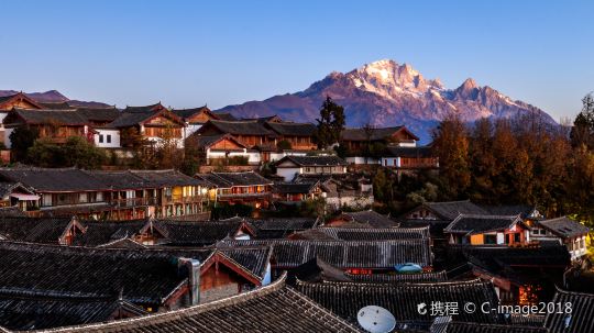 丽江古城又名大研镇,是茶马古道上有名的城镇之一,影视剧《一米阳光》、《木府风云》等都在此取过景。古城内木楼青瓦,古街石巷,小桥流水,站在古城东大街上,举头即可遥望玉龙雪山,景色十分秀丽。