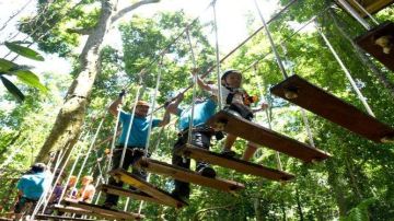 西双版纳原始森林公园是距离景洪市较近的一块原始森林,也是我国目前保存较完好的热带雨林之一。这里拥有一片参天大树,为丛林飞跃提供了很好的自然环境。想象一下自己犹如丛林泰山般穿梭在百年古树之间,摆脱重力束缚,离开地球表面,十分过瘾。