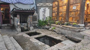 三眼井位于丽江古城内七一街上,是古城的一大显著特色。三眼井是纳西先民们用水的一种方式,第一口井为泉水源头,清冽洁净,是居民们平时的饮用水;水从第一口井溢出后流入第二口井,第二口水质洁净,用来洗菜和洗涮炊具;水从第二口溢出后流入第三口,第三口井为漂洗衣物专用,然后水从第三口排入排水沟中。这种特别的制井方式体现了纳西族人古老的节水环保观念,值得参观一下。