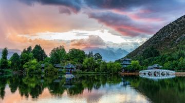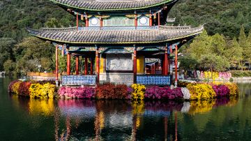 黑龙潭公园位于古城北象山脚下,从大水车溯流而上,有一个晶莹清澈的泉潭,那便是黑龙潭了。这里可以拍摄美丽的玉龙雪山,观看院内的很多古建筑,还能爬上象山俯瞰古城,是古城内的重要景点。