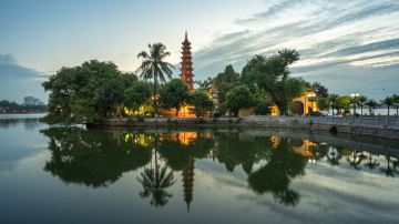 这里是感受河内人闲暇生活的好去处,早上很多当地人会来到湖边晨练,白天老人们在湖边垂钓、聊天,晚上湖边的长椅都坐满了人,还常能碰到在此谈情说爱的情侣。