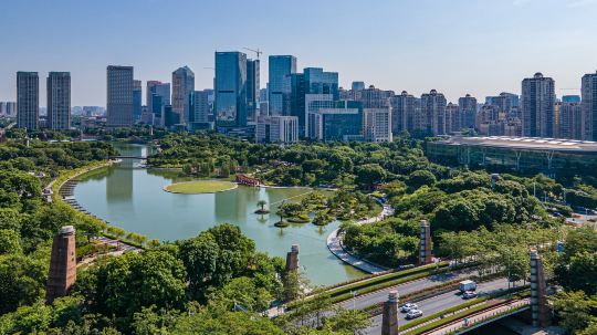 公园于2000年4月25日开工建设,2001年5月1日简易开园,同年10月1日正式与市民见面,整个公园以民心河东部河道形成的80亩广阔湖面为中心,在设计上采取现代造圆之手法,吸取国内外造园之精粹,人与自然,人与环境的结合,形成具有现代气息的园林风格。它不仅具有优美的景观环境,同时能满足不同层次人群的需要,是一所风格独特的精品园,整个公园由广场景观区、体育活动区、艺术走廊区、南国花园展区和水上活动区五个景观区组成。