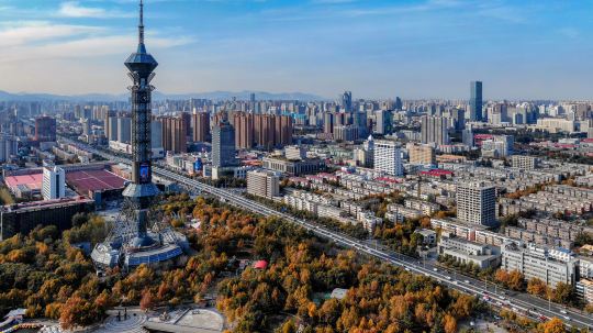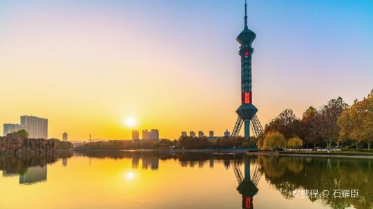 石家庄电视塔坐落于石家庄世纪公园,与石家庄广电中心大楼隔路相望。石家庄电视塔为全钢构架,始建于1997年元月,2000年10月1日正式对外开放。塔高280 米,是华北第一,亚洲第三高钢塔。其为集旅游、观光、餐饮、娱乐、广播电视发射于一体的多功能塔,是石家庄标志性建筑之一。