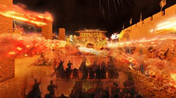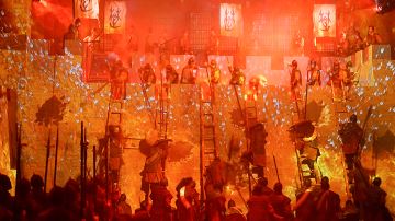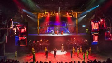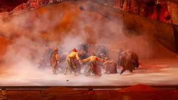 大型歌舞《西安千古情》以一位华裔少女回国寻根的故事为主线,开启一次寻找民族记忆之旅,犹如神奇的时空穿梭机,全面立体展现周秦汉唐的宏大篇章。这里有苍茫古远的半坡之光,这里有灞柳依依的浪漫诗情,这里有泱泱大秦的风骨气魄,这里有万里扬沙的丝路传奇,这里有大唐长安的盛世华章……上万套机械与设备满场运转,三千吨大洪水倾泻而下,数百立方黄沙扑面而来,用虚实结合的表现手法打破舞台与观众区域的界限,沉浸式地感受一次穿越之旅。