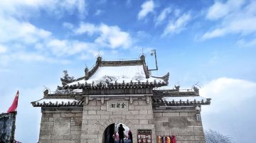 金锁关为华山五关之一,建在三峰口的一座石拱门上,是由五云峰通往东、西、南、中四峰的咽喉要道,锁关后则无路可通,所以又称为通天门。道家认为,华岳为仙乡神府,只有过了通天门,才算进入仙境。所以有“过了金锁关,另是一重天”的民谣。
