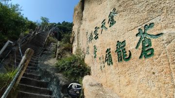 登上华山北峰,再向南折,经擦耳崖,过上天梯,便有一长岭呈现眼前。它莽莽苍苍,岭呈苍黑色,笔直插天,好像苍龙腾空,所以被称为“苍龙岭”。此岭上的台阶只有2尺多宽,两旁万丈深壑,势陡如刀削斧劈。岭脊上下高差约500米,坡度在45度以上。在这里遥望青松白云,耳听风声大作,令人心惊目眩。
