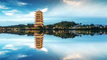 国家5A景区大唐芙蓉园,坐落于西安城南的曲江新区,与大雁塔遥遥相望,占地面积为998亩,其中水域面积300亩,绿地面积440亩,建筑面积近 10万平方米。园区建筑由中国工程院院士张锦秋先生担纲总体规划与建筑设计,日本园林大师秋山宽先生承担园林景观设计,是一个全 方位展示盛唐风貌的大型文化主题遗址公园。自2005年4月11日(农历三月初三)正式对外开放以来,一直致力于打造高品质、高标准的品牌旅游景区。