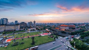站在钟楼上,能够看到从钟楼延伸出来的东、南、西、北四条大街,钟楼周边有西安繁华的商区、及不远处的鼓楼。