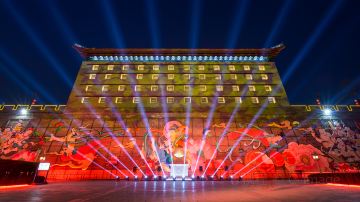 西安华夏文旅大剧院作为华夏文旅西安度假区项目的标志性建筑,设计为一座长142米,宽128米,高约50米的大型椭球体建筑物,可容纳3000人同时观看演出。剧场中央巧妙设计并修建一座可移动观众席,打破了世界单一舞台演出模式,通过旋转行走看台将观众送至观演位置,带给观众全新的视听享受。