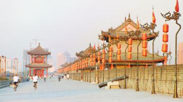 西安城墙,是古都西安的标志性景观,也是我国迄今保存最完整的古城墙之一。全长约14公里是在唐代皇城的基础上建成的,包括护城河、角楼等一系列设施。