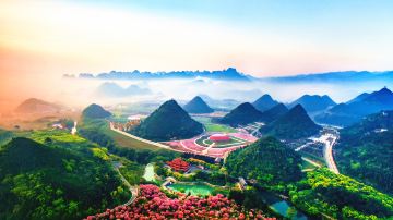 万峰林位于兴义市城南,由近两万座奇峰翠峦组成,是中国西南三大喀斯特地貌之一。峰林密集奇特,气势宏大壮阔,堪称中国锥状喀斯特博物馆,被称誉为“天下奇观”。