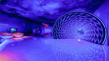 欣赏完震撼的中国天眼后,可以去参观天文体验馆,到了这里就可以拿出手机任意拍照了。馆内有序厅、射电体验厅、天文科普厅、儿童天文园、互动体验区等等,通过文字介绍加上声、光等技术配合,将视觉、听觉、触觉融为一体,极具科幻感,非常生动形象地展示了天文学知识。在这里无论是小孩、学生还是成人都可以增长知识、拓宽视野。