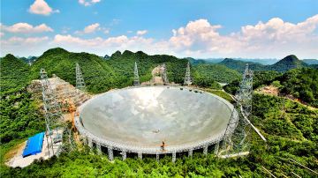 中国天眼——FAST(Five hundred meters Aperture Spherical Telescope,简称FAST),于2016年9月25日落成并投入使用,位于黔南布依族苗族自治州平塘县,是世界较大的单口径球面射电望远镜。