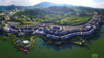 丹寨万达小镇坐落于丹寨县东湖湖畔,以苗族传统特色建筑为基础,以丹寨历史文化传承与民族风情为核心。小镇分为姊妹街、尤公街、苗姐三大主题街,与尤公广场、苗年广场、鼓楼广场、锦鸡广场四大广场。景区拥有创吉尼斯世界纪录的较大水车(直径28米)。苗族贾理、芦笙舞、锦鸡舞、苗年节、苗族蜡染、古法造纸、苗族服饰多项非物质文化遗产璀璨聚集。