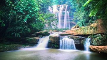 四洞沟风景区离赤水市城区17公里,在景区四洞沟一段约四公里的河道上,按大致相等的距离排列着四级跌水瀑布,姿态各异。四个瀑布分别为水帘洞、月亮潭、飞蛙崖、白龙潭,各有特色,游客可以选择观光车或者徒步游览。